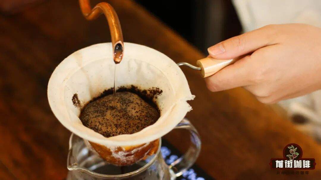 因为是以粉液比计量,我们看不到注入的水量,所以在闷蒸时,我们不再是注入粉的两倍水量,而是将咖啡粉打湿即可。但打湿也有技巧,先将热水集中在中心注入一段时间,随后再缓慢向外绕圈,直至表面的所有咖啡粉都被湿润。此举的目的是为了防止通道效应出现导致闷蒸不均匀,然后时间同样是30秒。