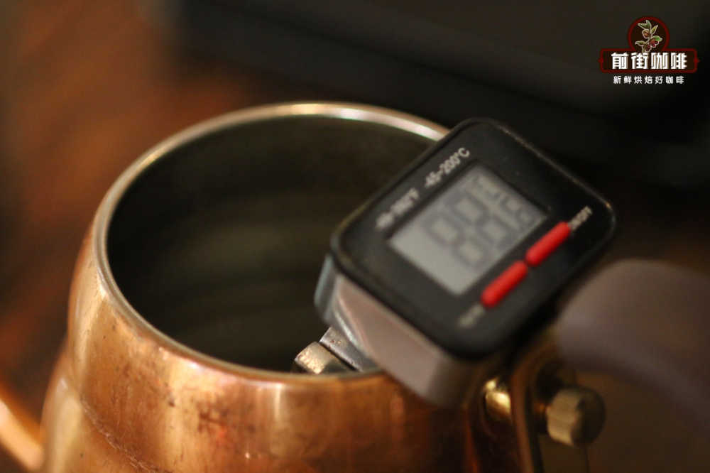 温度计是为了测量热水的温度,水温与研磨度起到类似的作用,水温越高,咖啡萃取效率越高,越容易释出各种物质成分,浓度也越高。如果采用接近沸腾的热水冲煮,容易萃取出让人不愉悦的苦涩物质,因此冲煮中深烘咖啡豆,前街会采用与浅烘咖啡豆不同的冲煮参数。所以中深烘焙咖啡豆前街建议选用87~90℃,而浅度烘焙咖啡需要更高水温激发出香气,因此用到91~93℃。