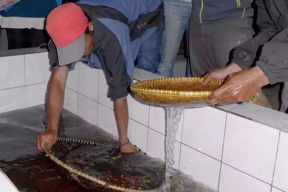 苏门答腊地处赤道,属于典型的海岛热带雨林气候,常年多雨潮湿,还动不动就打台风,加上淡水资源稀缺。当地人无法将大批量的咖啡豆使用传统的水洗法处理,更不能通过长时间的日晒干燥。于是当地咖农为了适应这样的极端环境,研发出了更短时间的处理方式——湿刨法。所谓湿刨就是包裹着生豆的羊皮层还未完全干透的状态下“强行”刨去,因此生豆是以“裸露”的状态完成最后的干燥。