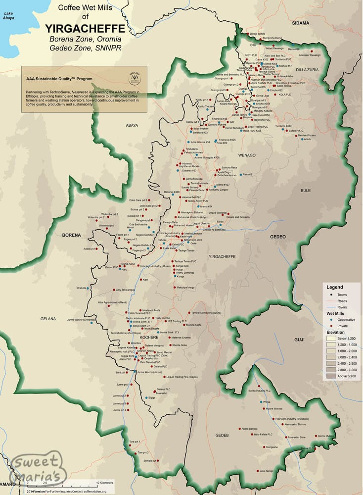 耶加雪菲附属西达摩产区,由于风味独特所以被独立了出来,自成一格,也成为了非洲地区最富盛名的产区。