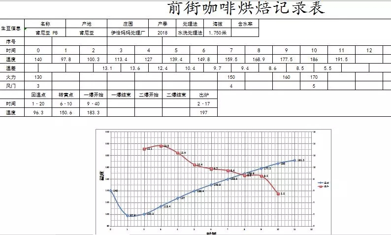前街根据这支咖啡豆为其设计了适合生豆特征的烘焙方案。这款肯尼亚圆豆生豆颜色翠绿,含水率比较高,密度也是比较高的。圆豆由于在锅炉内翻滚比较容易,受热会相比平豆更均匀。但是这只豆子的豆质与密度使得透热性并不好,因此前街设计的烘焙要让热量足以到达豆芯,通过延长脱水时间让咖啡在烘焙准备阶段更好地均质化,以较高火力进入一爆,表现它浓郁的莓果类风味和醇厚口感。