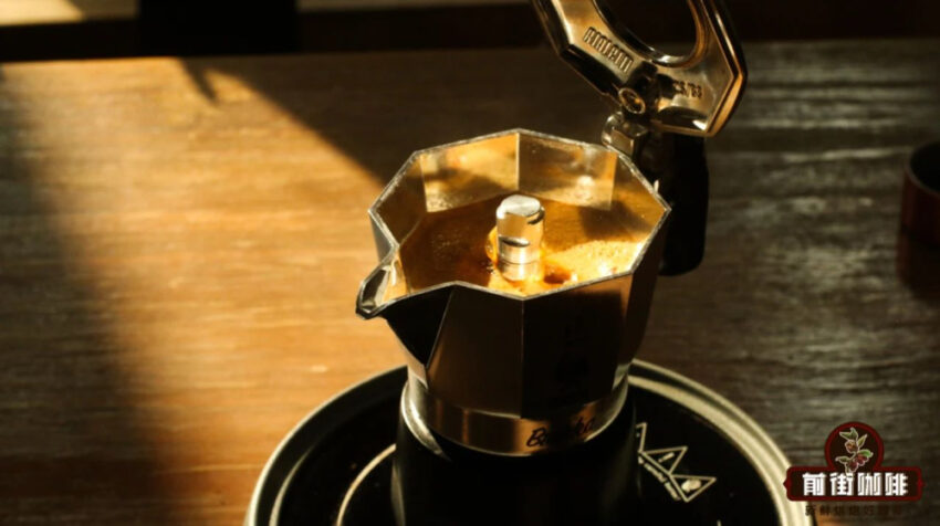 摩卡壶分为上壶、粉槽、和下座三部分组成,有不同的规格大小,前街所使用的是比乐蒂三人份单阀摩卡壶。下壶是盛水的水槽,粉槽是用来盛放咖啡粉,上壶是盛放煮好的咖啡。使用时,通过加热下壶的水,产生蒸汽压力,萃取咖啡的水是从下往上流。等压力达到足够高时会往上推,热水流经粉槽层,咖啡粉层形成阻碍水流经的阻力,最后热水突破咖啡粉层的阻力,涌入上壶就是浓郁的咖啡液。