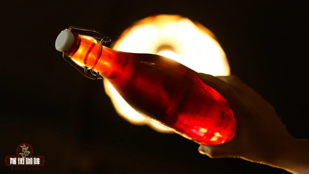 前街試過用蘇打水來製作冷萃咖啡,發現濃度會偏高。原因就在於蘇打水的氣泡在放進冰箱前,蘇打水冷萃的咖啡粉浮在上層,經過氣泡的上升「撞擊」咖啡粉,達到13小時後,從冰箱拿出來,咖啡粉已經下沈到瓶底,咖啡粉在浸泡的過程中有經過由上往下的運動,咖啡粉更容易被萃取出物質。