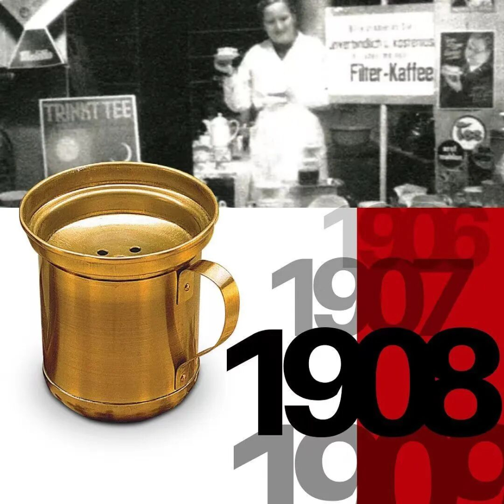 1908年6月,梅麗塔在德國皇家專利局註冊了她的這項發明:壹個拱形底部穿有壹個出水孔的銅質咖啡過濾器和濾紙,這或許就是世界上第壹個濾泡式咖啡杯。與此同時,她成立了梅麗塔公司(The Melitta Company),開始正式售賣手沖工具。